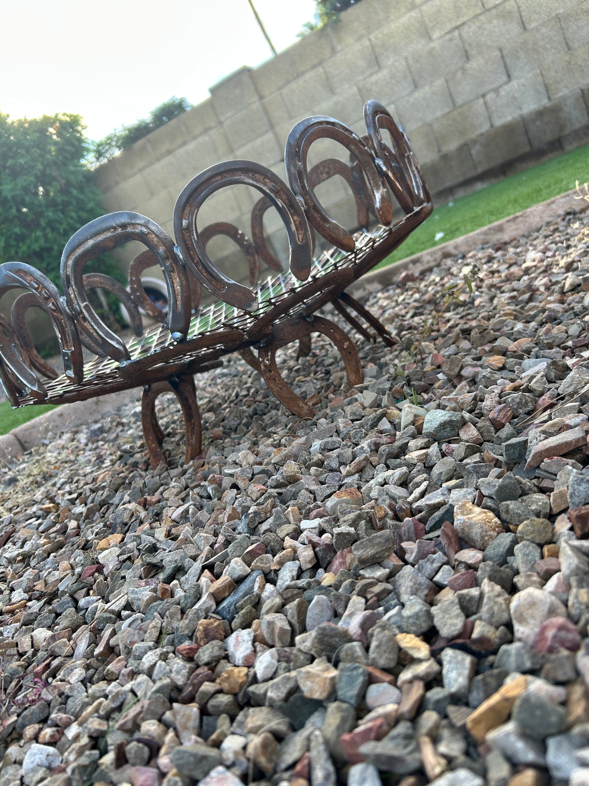 Handcrafted hand hand, welded horseshoe fire pit with horseshoes from my local farrier!